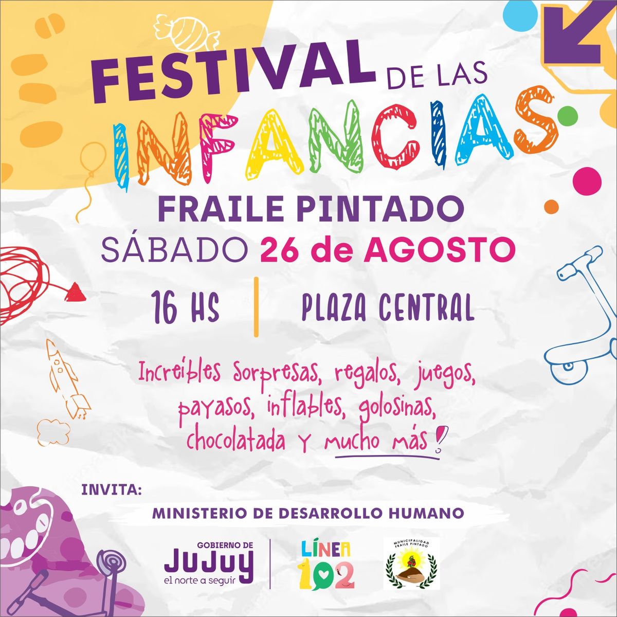 Fraile Pintado celebrará el Día de las Infancias, el sábado 26 de agosto a partir de las 16:00 horas en la plaza Central.