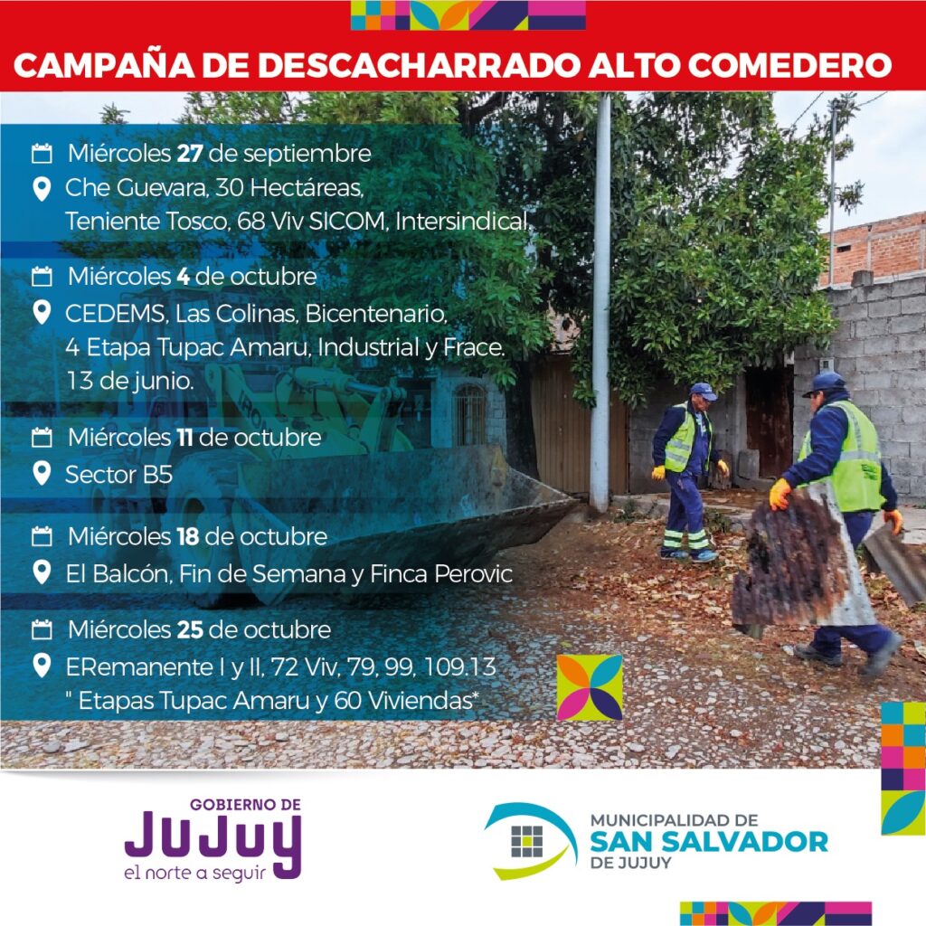 La campaña se llevará a cabo en diversas fechas durante el mes de septiembre y octubre, brindando a los residentes de Alto Comedero la oportunidad de deshacerse de objetos en desuso que puedan acumular agua y convertirse en focos de proliferación de mosquitos. Cabe destacar que la Municipalidad de San Salvador de Jujuy aportará toda la maquinaria necesaria para llevar a cabo esta acción de manera eficiente.