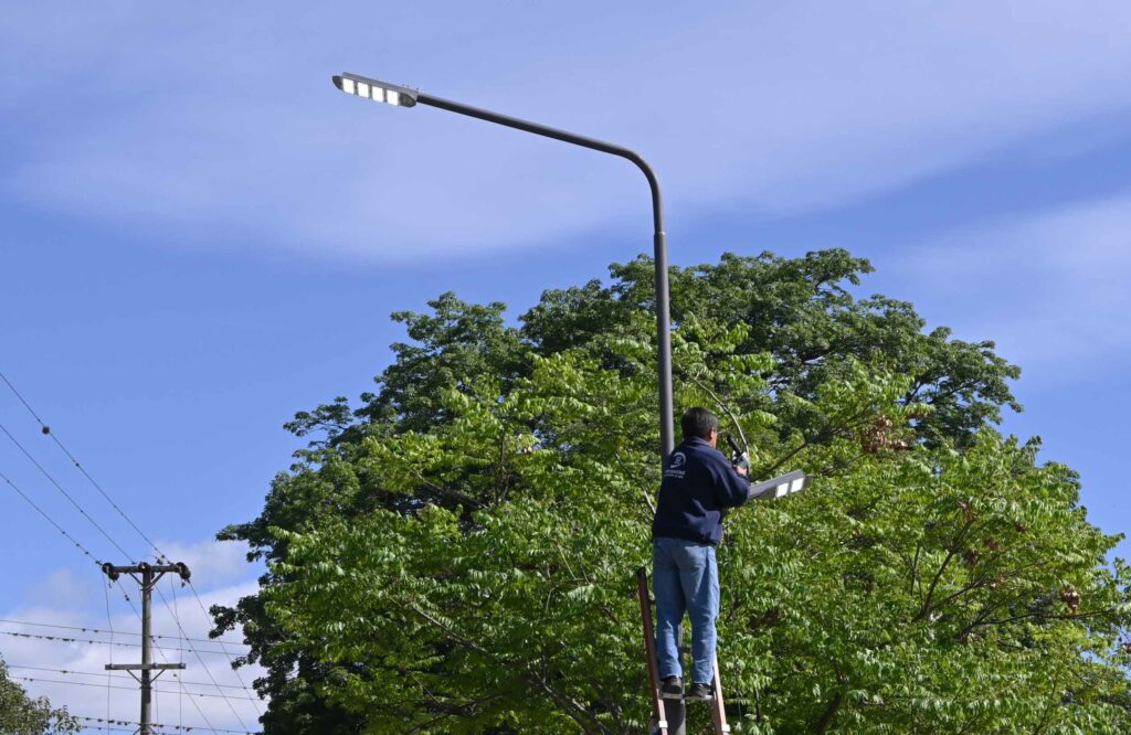 “Estamos colocando estas luminarias, en el sector entre Reyes y Guerrero, también en la Ruta N° 4, y en barrio Los Molinos; vamos a continuar colocándolas hasta terminar el stock con el que se cuenta, que creemos que se va a producir en dos semanas”, añadió.