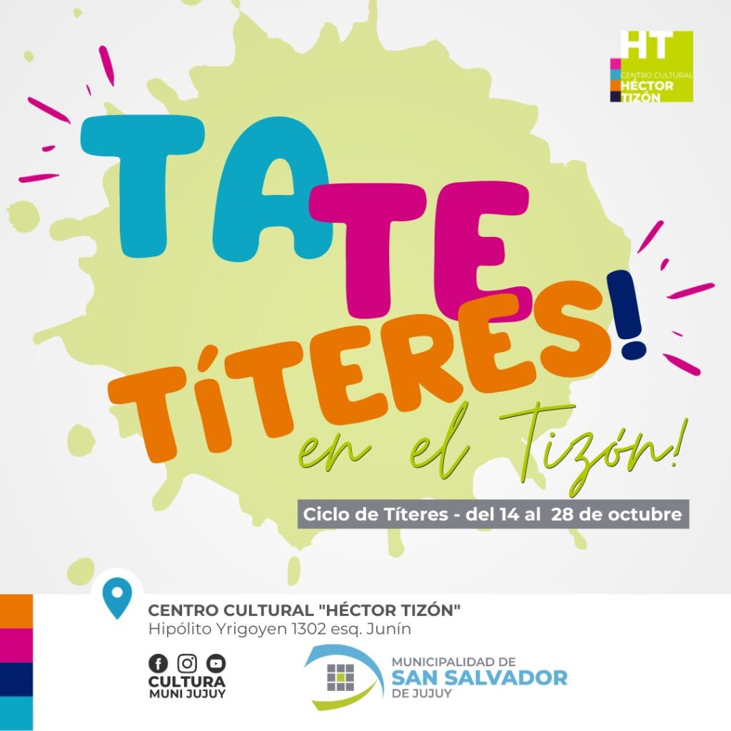 La propuesta, denominada “TaTeTitere” que tendrá lugar en el Centro Cultural Héctor Tizón de avenida Hipólito Yrigoyen 1302, los sábados 14, 21 y 28 de octubre a partir de las 18 hs. está pensada para toda la familia. Las entradas se pueden adquirir en la puerta del centro cultural a un costo mínimo y con promociones para que todos puedan participar.