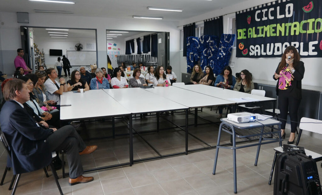 Luego la profesional, Vanessa Cardoso, se refirió a los temas tratados en el ciclo de alimentación saludable, detallando temas como huerta escolar y familiar; Parque Botánico relacionado al medio ambiente sustentable; conservación de los alimentos y la manipulación correcta;” desde la UCSE a través de gabinete de extensión, se trabajó sobre las guías de la gráfica de la alimentación saludable y conocer tú alimentación”.