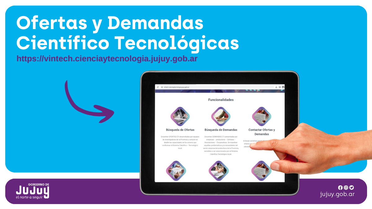 La Agencia de Ciencia, Tecnología e Innovación a través del área Observatorio de estudios y Prospectiva de nuestro organismo, ha desarrollado la innovadora plataforma Vintech, en la provincia de Jujuy. Esta herramienta pionera en su clase ha sido creada para facilitar la colaboración entre empresas, universidades e instituciones tanto públicas como privadas, que ofrecen servicios científicos y tecnológicos, y aquellos que buscan satisfacer sus necesidades en estas áreas.