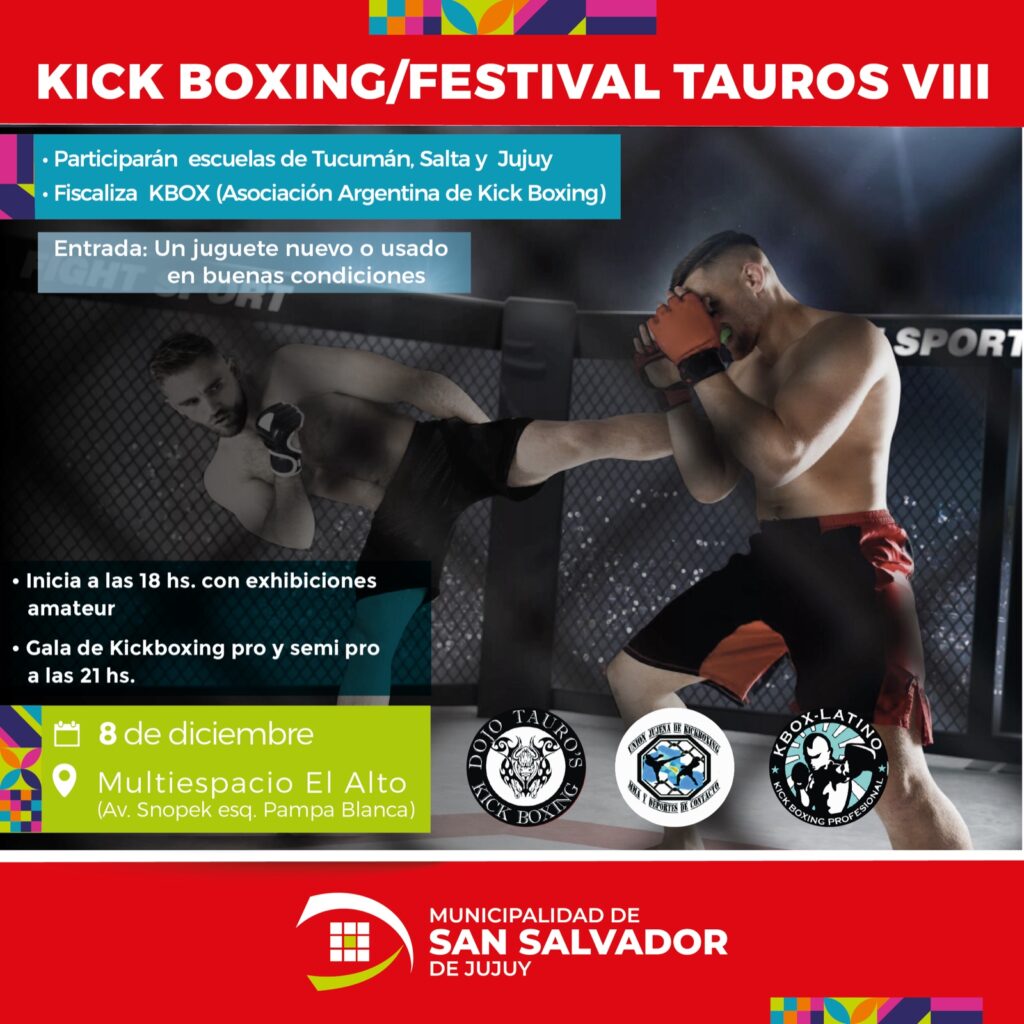 El multiespacio “El Alto”, el viernes 8 de diciembre a partir de las 18 horas, será escenario del festival de kick-boxing “Tauro VIII”, organizado por la Municipalidad de San Salvador de Jujuy, a través de la Dirección de Descentralización y el Centro de Participación Vecinal “Combate de Alto Comedero” bajo la coordinación del campeón mundial jujeño, Enrique Orosco; encuentro deportivo, que tendrá la finalidad social, de recaudar juguetes, para ser distribuido a los distintos comedores o merenderos de ese denso sector de la ciudad en la celebración de los Reyes Magos.