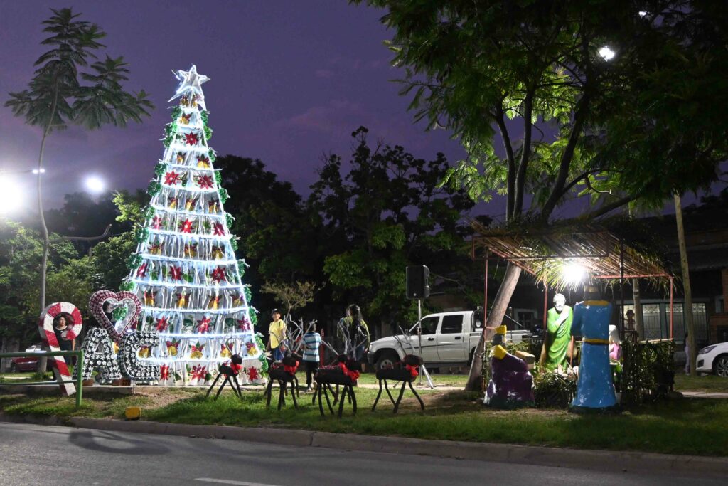 Con un marco alegórico a la llegada de las fiestas navideñas la Municipalidad de San Salvador de Jujuy, continúa decorando la paisajística de la ciudad, en la oportunidad a través de la Delegación de Alto Comedero se realizó un árbol de navidad con una altura de 12 metros, confeccionado con más de 300 bolsas plásticas y botellas descartables, lo que representa la capacidad de recolección y cuidado del medio ambiente de todos los vecinos del amplio sector.