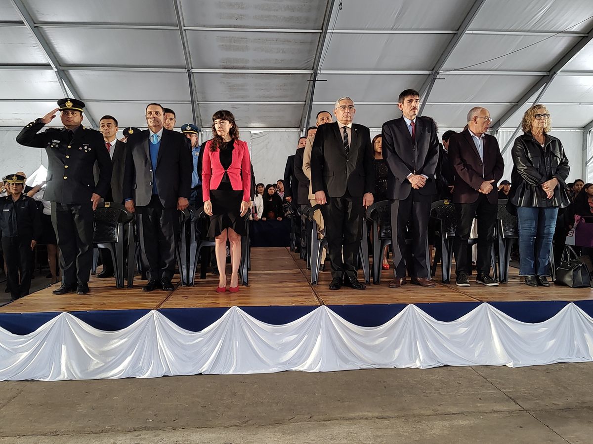 Encabezó el acto, el Ministro de Seguridad, Guillermo Corro, quien estuvo acompañado por los Secretarios de Seguridad Pública, Horacio Herbas Mejias; de Delitos Complejos, Ernesto Albin; de Seguridad Vial, Alejandro Maenco; el rector del IUPS, Simón Cabezas; el Jefe y Sub Jefe de la Policía de la Provincia, Comisarios Generales Javier Tejerina y Milton Sanchez.