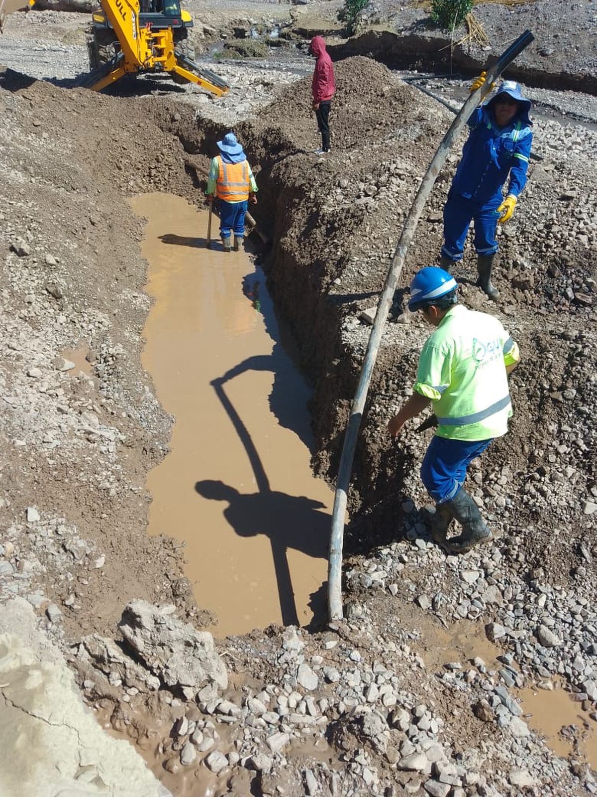 Los trabajos realizados por el personal operativo y técnico de la empresa estatal tuvieron el apoyo de operarios y maquinaria prestada del municipio para la efectiva intervención sobre la cañería de impulsión.