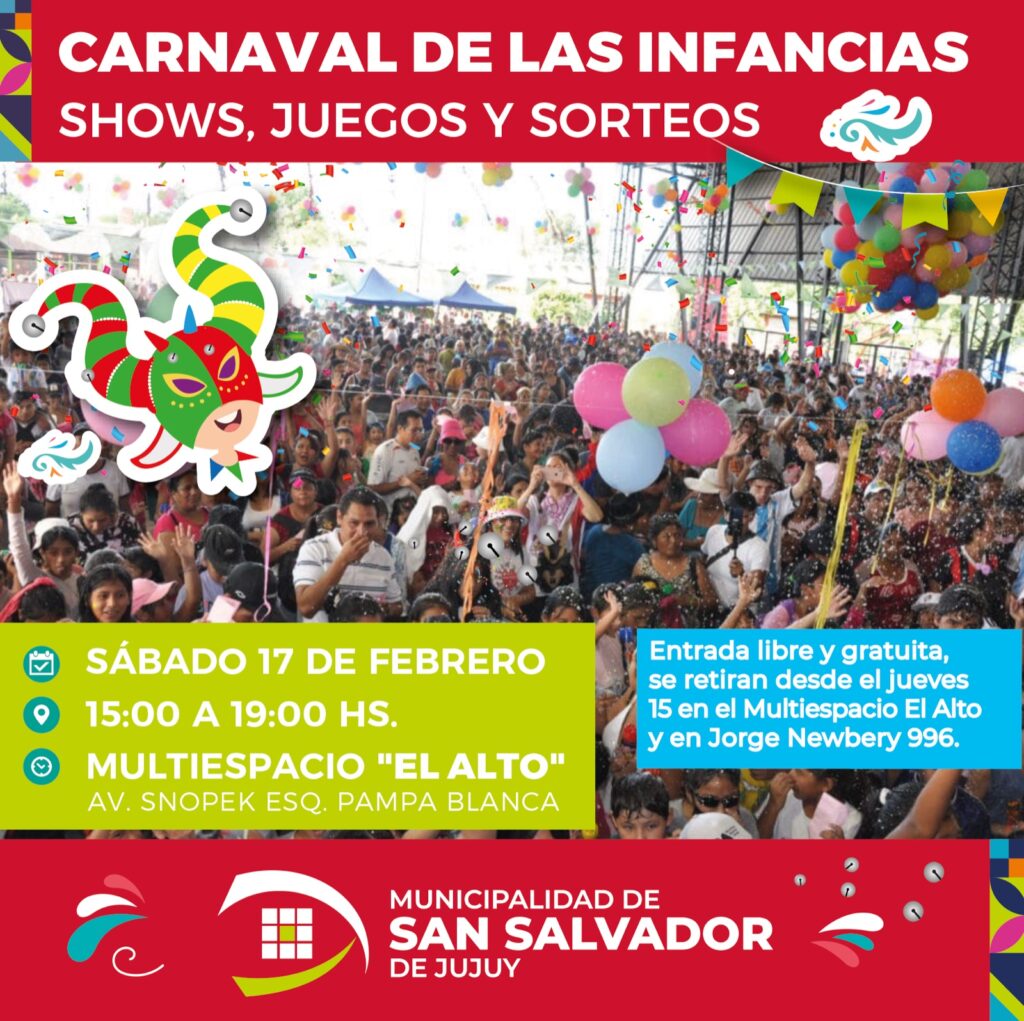 Esperamos que este Carnaval de las Infancias sea un éxito rotundo y que todas las familias jujeñas se sumen a esta celebración que nos une como comunidad. ¡No faltes! Acompáñanos el sábado 17 de febrero en el Multiespacio El Alto para disfrutar de una tarde inolvidable junto a los más pequeños de la casa.