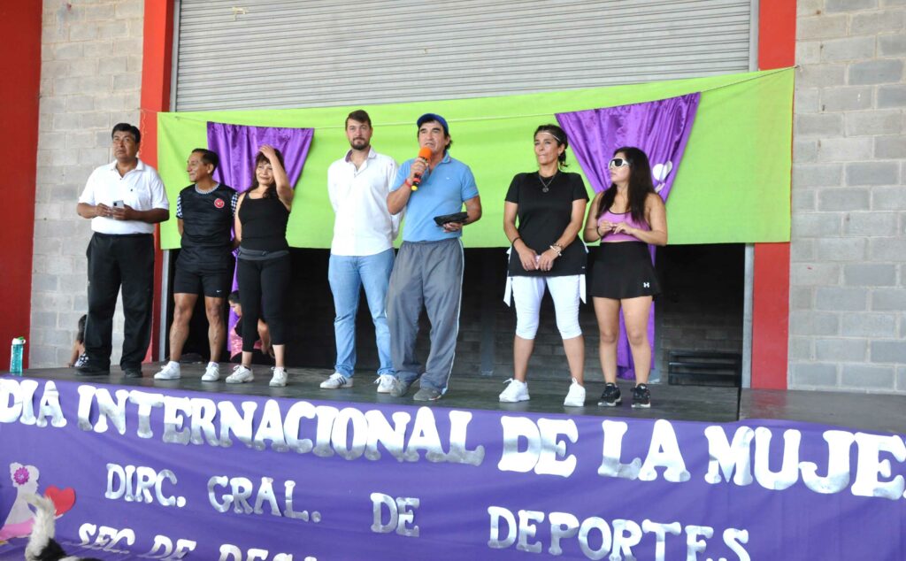 A su turno, el director de Deportes Distrito Alto Comedero, Benicio Ruiz, se refirió a los detalles, “organizamos distintas actividades nucleando en el polideportivo Fútbol Femenino, Newcom recreativo para adultos mayores y actividades aeróbicas de ritmo y zumba para toda la gente que se sumó a esta movida por el Día Internacional de la Mujer”, y pronunció un mensaje para la ocasión, “el mejor mensaje que le podemos dar a las mujeres es que desde la Municipalidad, desde la gestión del Intendente Jorge estamos apoyando la lucha de la mujer, tal es así que se creó la Dirección de Paridad de Género, y se implementaron lugares donde pueden asistir las mujeres víctimas de la violencia familiar; cabe destaca que la directora general de Deportes y Recreación es una mujer, la profesora Cristina Kity Conde, quien se suma a una importante cantidad de funcionarias del Municipio que son mujeres, y ese es el valor que le pone el Intendente Jorge desde esta gestión a la paridad de género”.