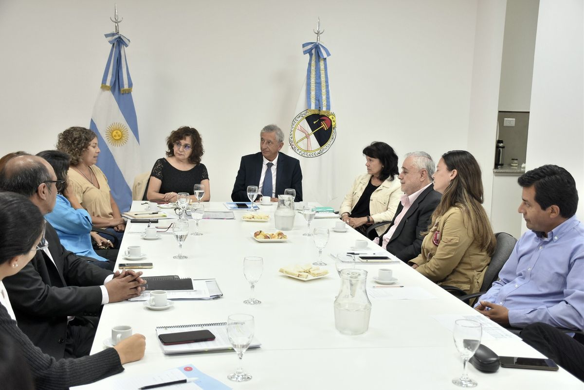 Funcionarios del Ministerio de Educación, encabezados por la ministra Miriam Serrano, recibieron al auditor general de la Auditoría General de la Provincia, Carlos Romeo Alfonso.