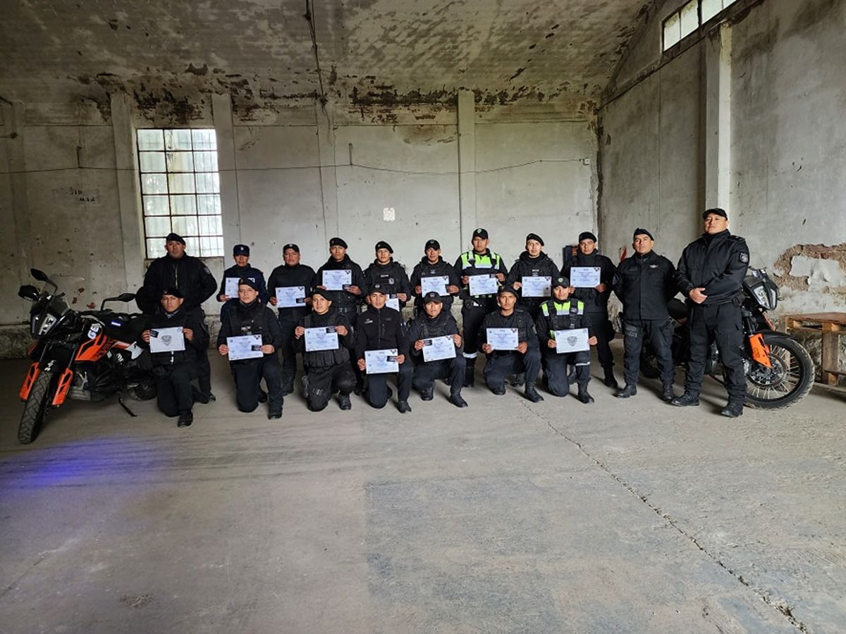 Por otra parte, quince efectivos policiales, entre hombres y mujeres, finalizaron el “VI Curso de Motorista Policial” que se dictó en la base del Grupo Especial Motorizado (G.E.M.) de ciudad capital, en donde los currantes desarrollaron nuevas destrezas en el manejo de motos de alta cilindrada en situaciones de conflictos, enfrentamientos y persecución policial.