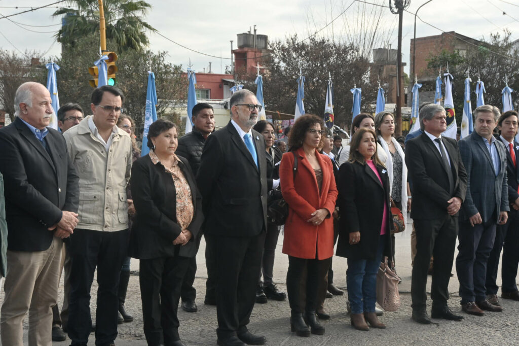 Durante su discurso, el intendente Jorge dedicó un emotivo homenaje a los héroes de Malvinas, destacando su sacrificio y legado. “Buenos días a todos, con especial reconocimiento a los valientes mártires del crucero general Belgrano, quienes, durante más de tres décadas, siguen acompañándonos en la avenida 10 de Junio. Aquí reafirmamos la voluntad inquebrantable del pueblo argentino de continuar defendiendo nuestra soberanía nacional, enraizada en los ideales de 1816, año de nuestra independencia. Nos llena de orgullo enarbolar nuestros símbolos patrios en defensa de nuestro territorio, injustamente arrebatado por la piratería de una potencia extranjera como el Reino Unido”.
