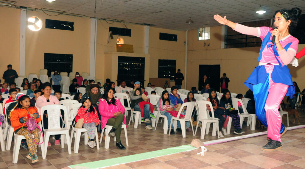 A su turno, Ailen López quien se desempeña como coordinadora Provincial de Derechos Culturales, manifestó que el Programa Recreo Largo nació hace siete años aprovechando los 15 días de receso escolar invernal, “nuestro objetivo es generar el acceso a la cultura, debido a que muchas veces las infancias no tienen acceso a espectáculos recreativos y culturales como el cine o los teatros; generamos productos teatrales como obras con títeres o payasos en toda la provincia de Jujuy. Recorreremos 40 municipios con 43 presentaciones infantiles como esta obra con cuatro jóvenes con momentos de circo, como payasos y música para interactuar con el público”.