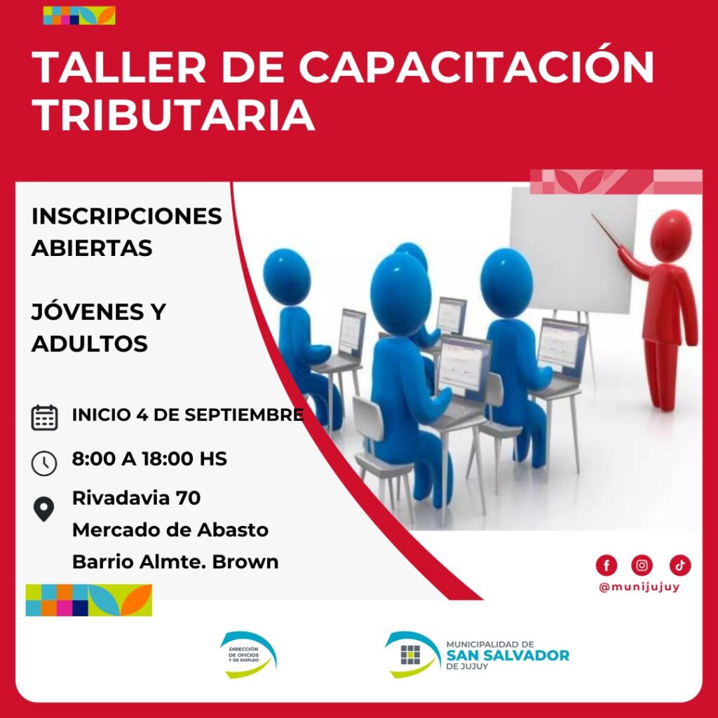 La Municipalidad de San Salvador de Jujuy, a través de la Dirección de Oficios y Empleo, dependiente de la Secretaría de Planificación y Ambiente, informa a la comunidad que se encuentran abiertas las inscripciones del Taller de Capacitación Tributaria, a través del cual se brindarán nociones sobre el manejo de las herramientas informáticas disponibles en la Administración Federal de Ingresos Públicos. La propuesta, que iniciará el próximo 4 de septiembre, prevé tres jornadas de trabajo que se desarrollarán en el Mercado Municipal de Avenida Almirante Brown, y estarán a cargo de la CPN, Liliana Morales.