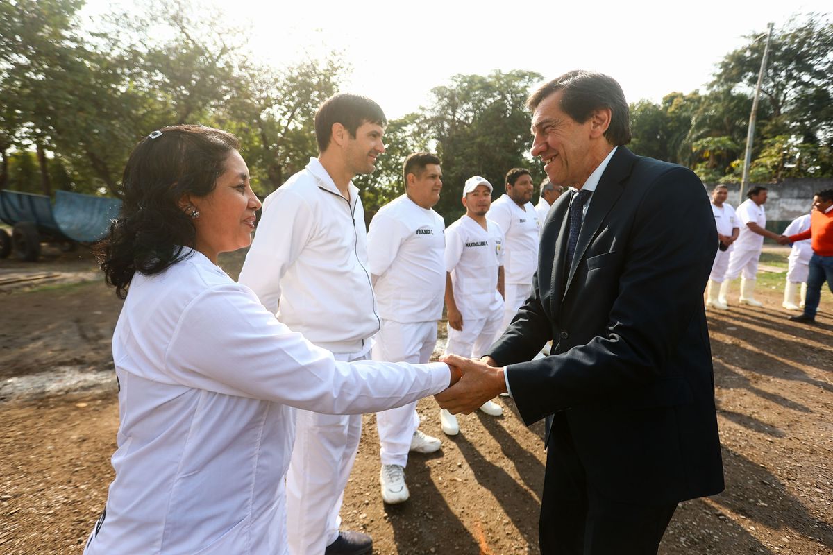 Finalizada la inauguración, el gobernador se dirigió al Matadero Municipal donde recientemente se concluyeron obras de ampliación y mejora en el predio, a fin de optimizar su operatividad. En el lugar, Sadir, acompañado por el intendente José Mario Cardozo, entregó indumentaria a los trabajadores.