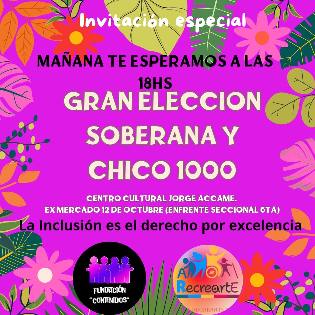 Las fundaciones Jujuy Recrearte y Contenidos y Asociación Nueva Vida, organizan para este domingo la Elección de Soberana y Chico 10 dentro del contexto inclusivo.