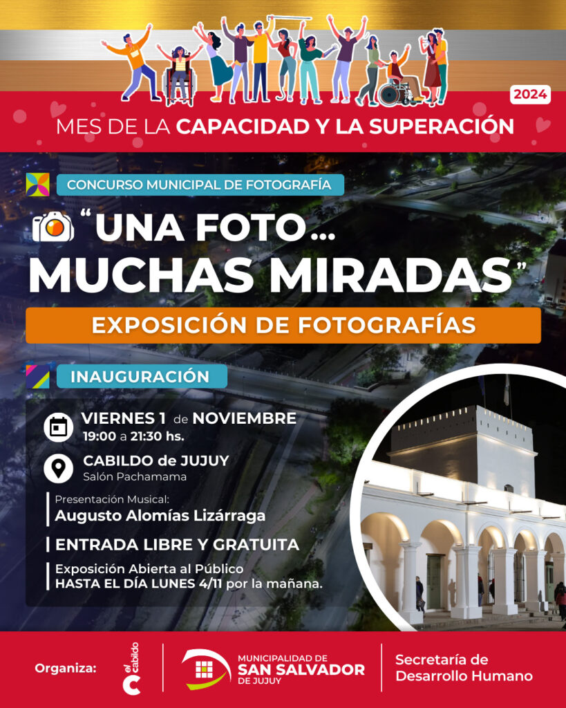 En el marco del Mes de la Capacidad y la Superación, la Municipalidad de San Salvador de Jujuy invita a toda la comunidad a participar en la exposición fotográfica de la Gran Muestra del Concurso “Una Foto… Muchas Miradas”. A través de esta colección de imágenes, se busca celebrar la diversidad y la inclusión, resaltando el talento y las distintas perspectivas que enriquecen a la sociedad jujeña.