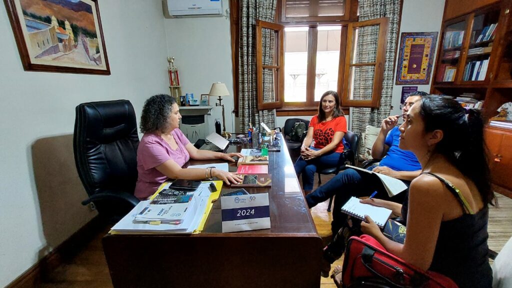 El encuentro estuvo integrado por Verónica Aramayo, jefa del área municipal; la cantautora y Lic. Eugenia Mur junto a la vicerrectora de la UNJu, Liliana Bergesio, y el coordinador de la Editorial de la Unju (Ediunju)- Dr. Fernando Sadir.