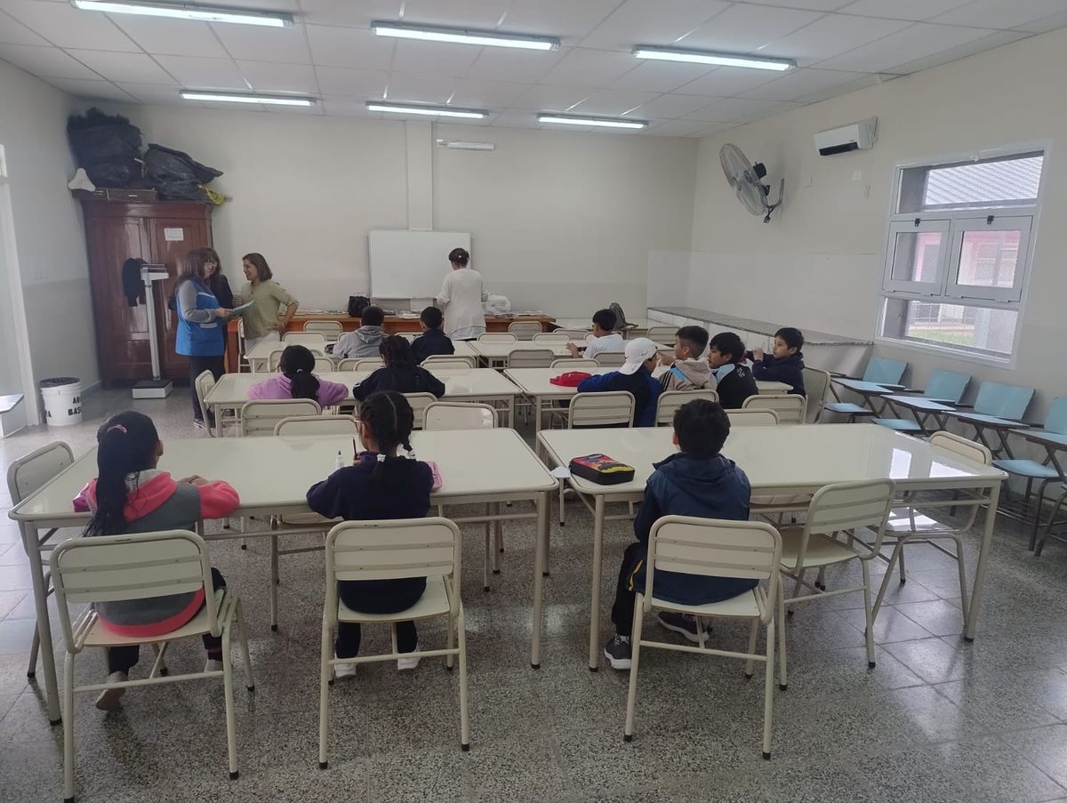 “Se decidió realizar el operativo en otro sector que no sea aula de todos los días, sino un espacio diferente, más distendido, y vemos gran participación y atención, además están muy entusiasmados con el lápiz que le dijimos que es mágico para que puedan pintar bien y consignar las respuestas correctas”, explicó la vicedirectora Elena Vinchaca.