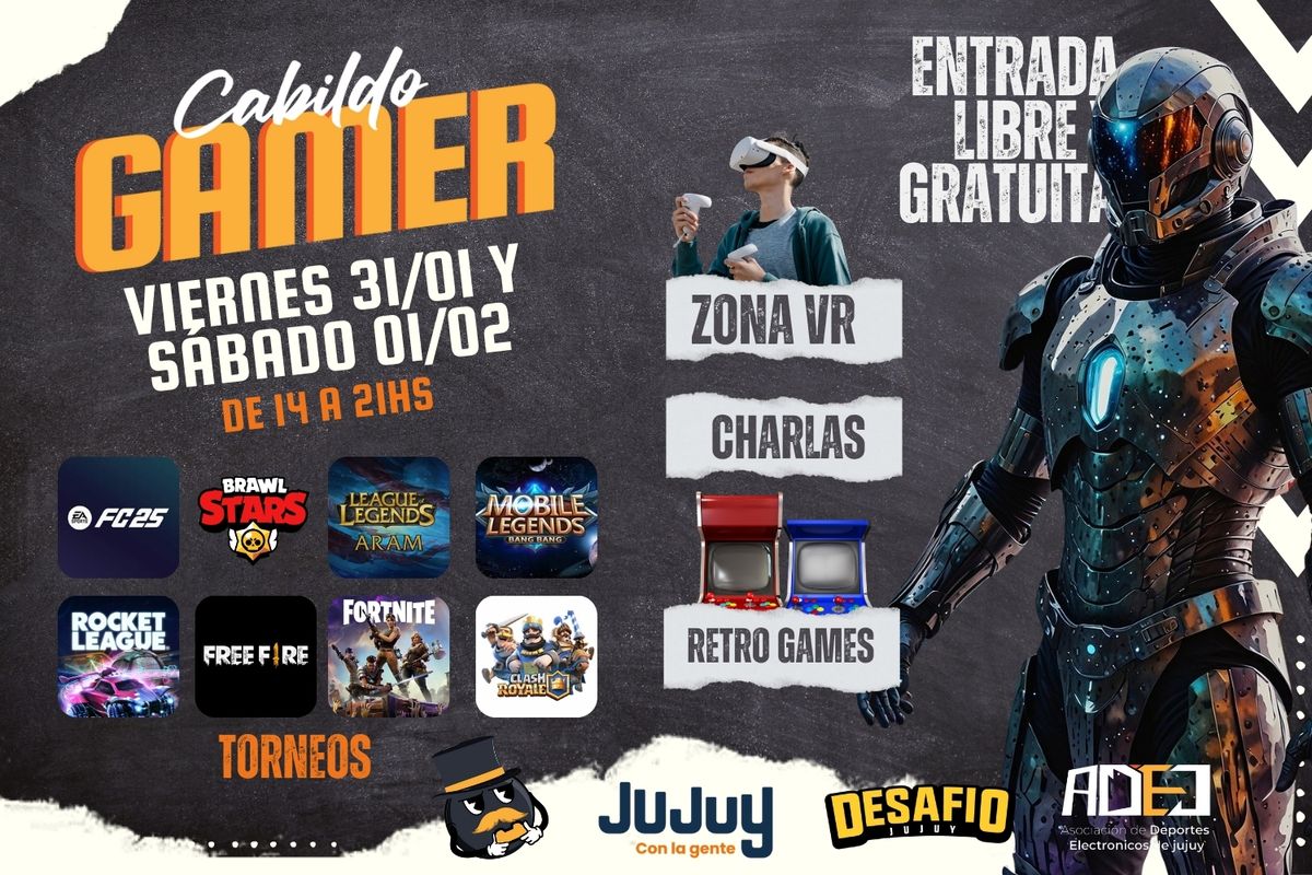 Las competencias de videojuegos, organizada por el Gobierno de la Provincia, junto a Desafío Jujuy y la Asociación de Deportes Electrónicos de Jujuy (ADEJ), convoca a jugadores y jugadoras de Fortnite, FC 25, Brawl Stars, Clash Royale, League of Legends, Mobile Legends, Rocket League y Free Fire.