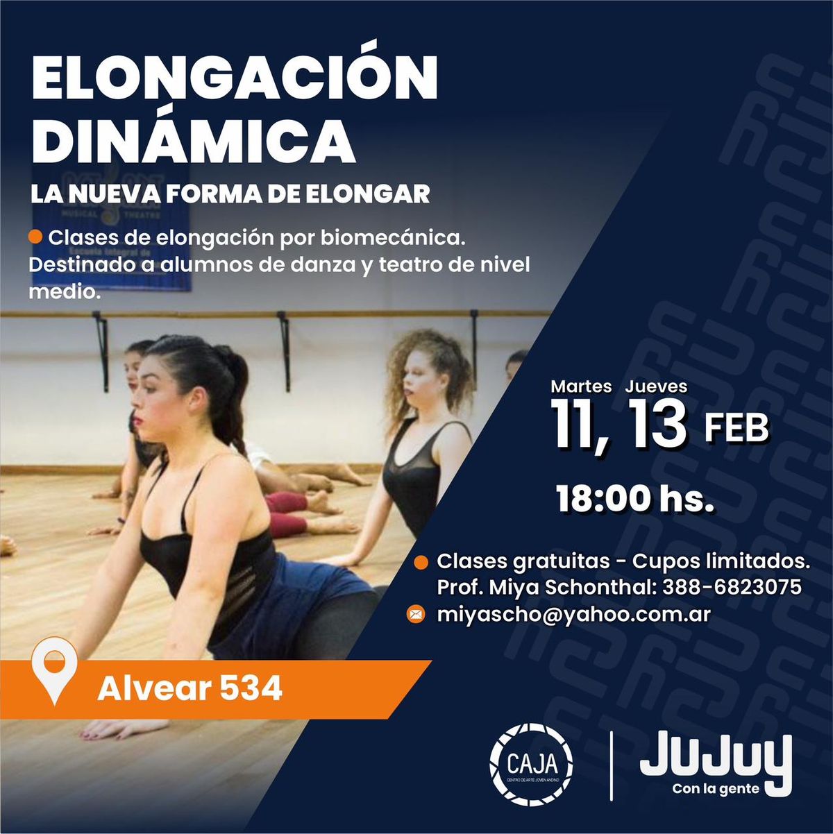 El próximo martes 11 y jueves 13 de febrero a partir de las 18:00 horas en el Centro Cultural CAJA, se llevará a cabo el «Workshop de Elongación Dinámica».