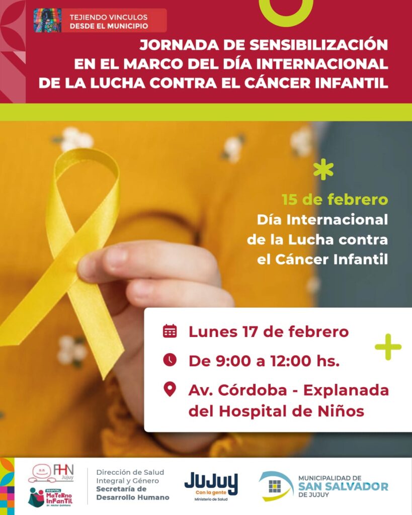 En el marco del Día Internacional de la Lucha contra el Cáncer Infantil, la Dirección de Salud Integral y Género de la Municipalidad de San Salvador de Jujuy, junto a la Fundación del Hospital de Niños y el Ministerio de Salud, invitan a la comunidad a participar de una Jornada de Sensibilización.
