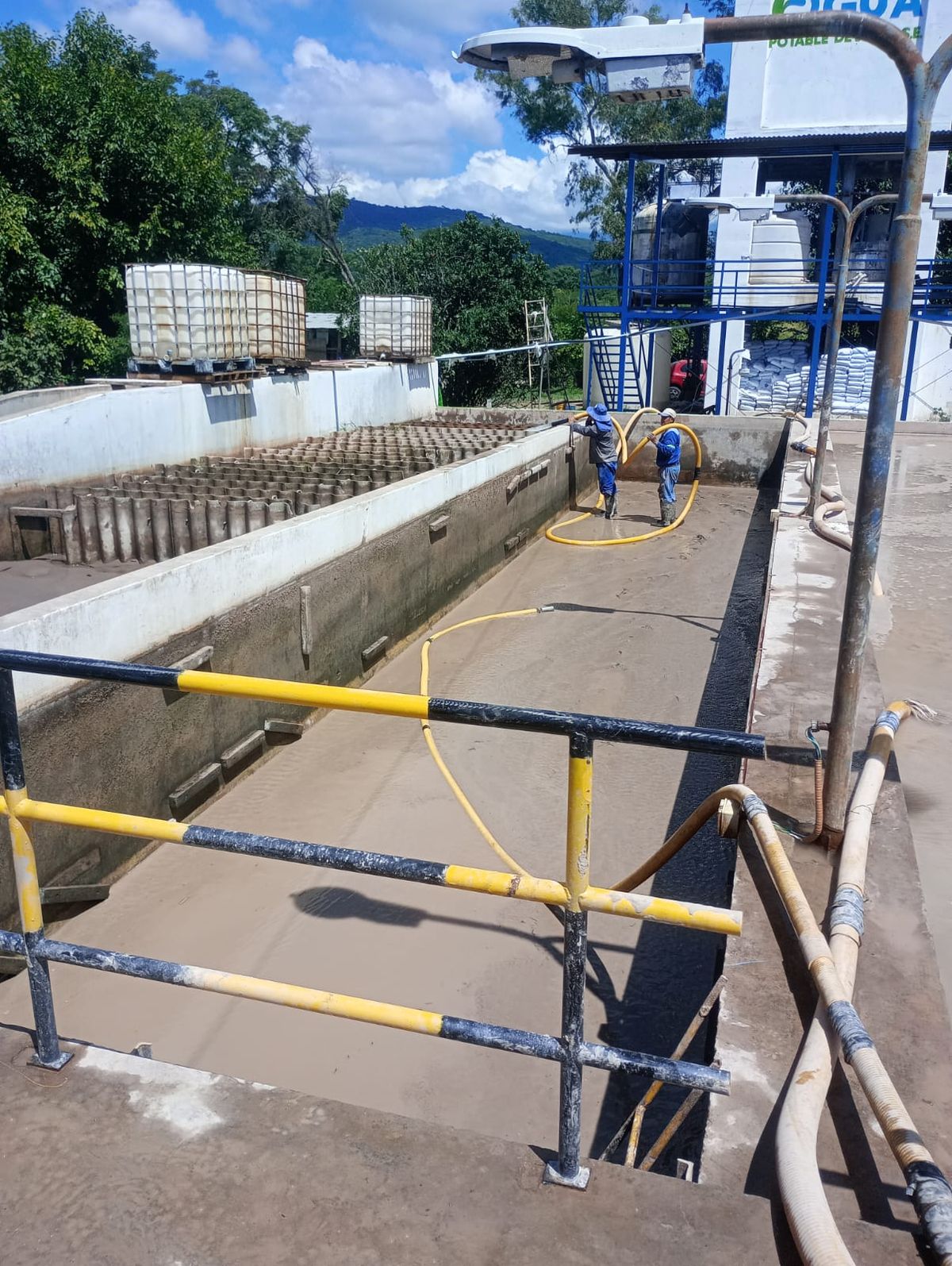 Planta Alto Reyes. Agua Potable continúa con el lavado del decantador, ya se sacaron dos metros y medio de barro