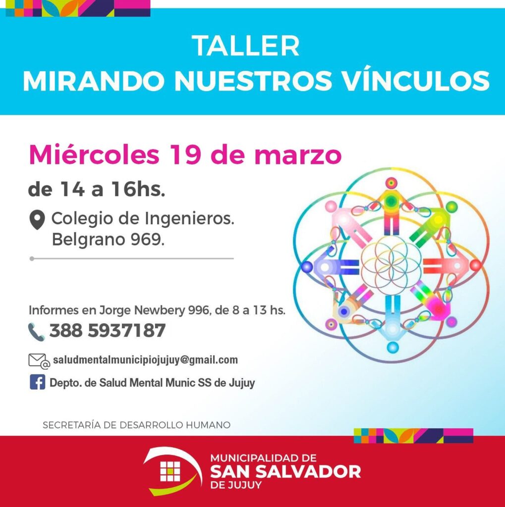 El Departamento de Salud Mental, dependiente de la Subsecretaría de Desarrollo Humano, invita a la comunidad a participar del taller gratuito “Mirando Nuestros Vínculos”, una actividad dirigida a todo público que busca fomentar la reflexión y el fortalecimiento de las relaciones interpersonales.