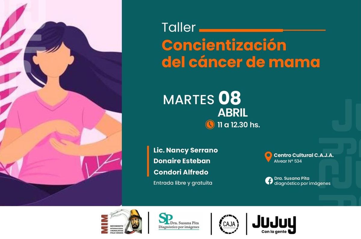 El taller de concientización sobre el cáncer de mama se llevará a cabo en el Centro de Arte Joven Andino – C.A.J.A., ubicado en Alvear N° 534. La propuesta busca generar un espacio de información y reflexión sobre la importancia de la detección temprana y el autocuidado.