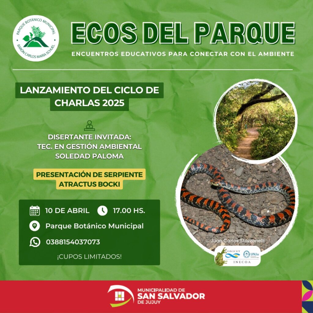 La actividad comenzará a las 17 horas y promete ser una oportunidad única para aprender y conectarse con la naturaleza. La jornada incluirá la presentación de la serpiente Atractus bocki, también conocida como Falsa Coral Fosorial de las Yungas, una especie rara, inofensiva y recientemente registrada en el parque. El descubrimiento resalta la importancia de conservar los ambientes naturales nativos, que funcionan como refugios clave para la biodiversidad y hábitat de especies autóctonas.