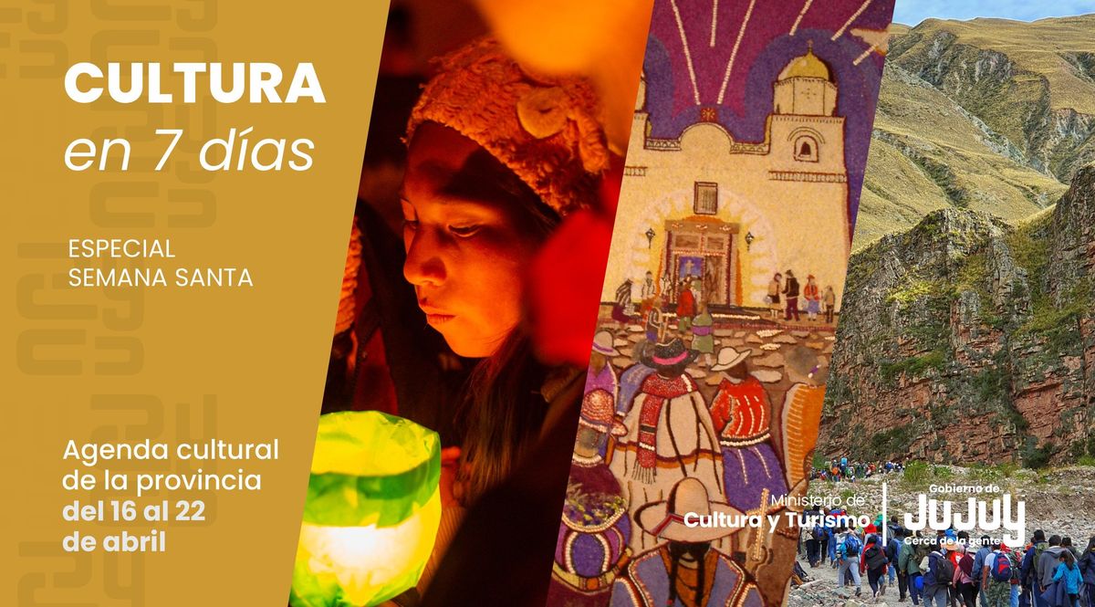 Especial Semana Santa Durante la semana del 16 al 22 de abril, la agenda cultural de Jujuy continúa atravesada por las celebraciones de Semana Santa, con numerosas procesiones, ferias, festivales y propuestas artísticas en toda la provincia.