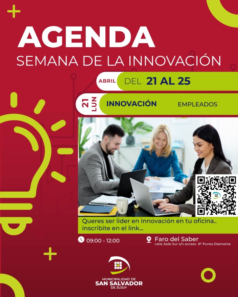 La apertura será el lunes 21 de abril, de 8:30 a 10:30 hs, con la charla “Empezamos por casa: Innovación y creatividad”, destinada a empleados municipales interesados en liderar procesos de cambio desde sus propios espacios de trabajo. Esta actividad se desarrollará en el Faro del Saber y es organizada por el área de Ciencia y Tecnología. Con capacidad para 120 personas, el encuentro busca incentivar el pensamiento innovador y creativo dentro del ámbito público. Formulario de inscripción