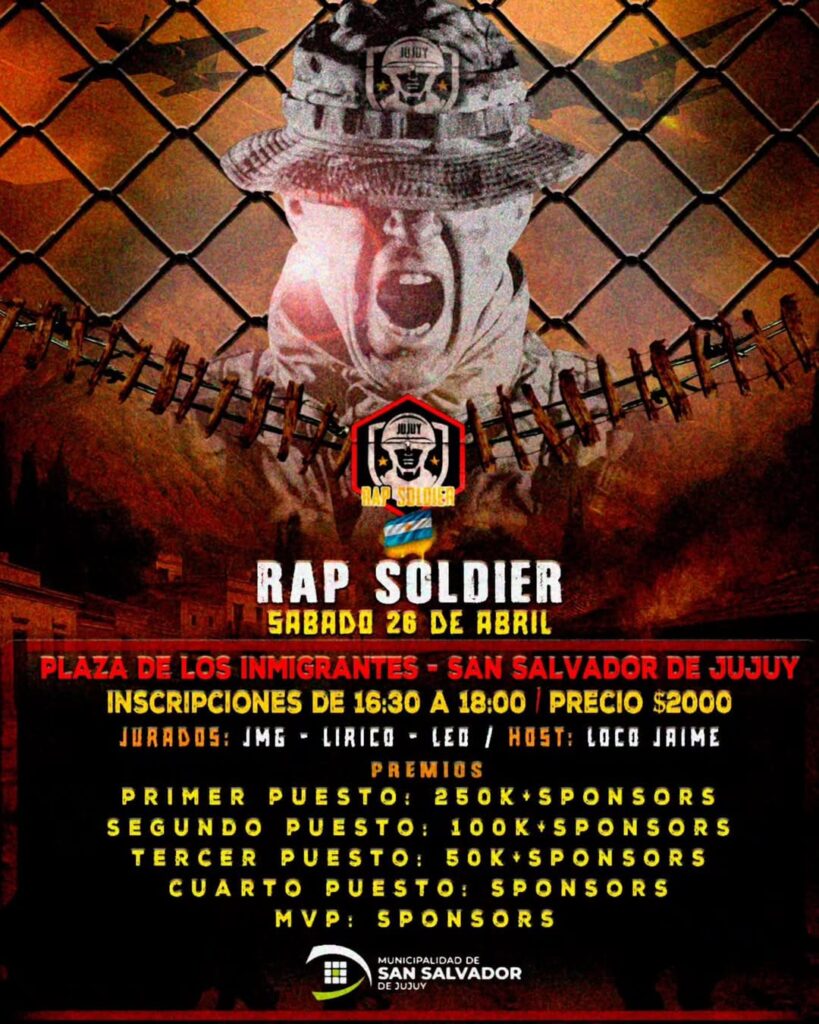Las inscripciones se realizarán ese día 16:30 a 18 horas. Para más información los interesados pueden ingresar a las redes Rap Soldier Jujuy o de Cultura Muni Jujuy, donde se encuentra disponible la información.