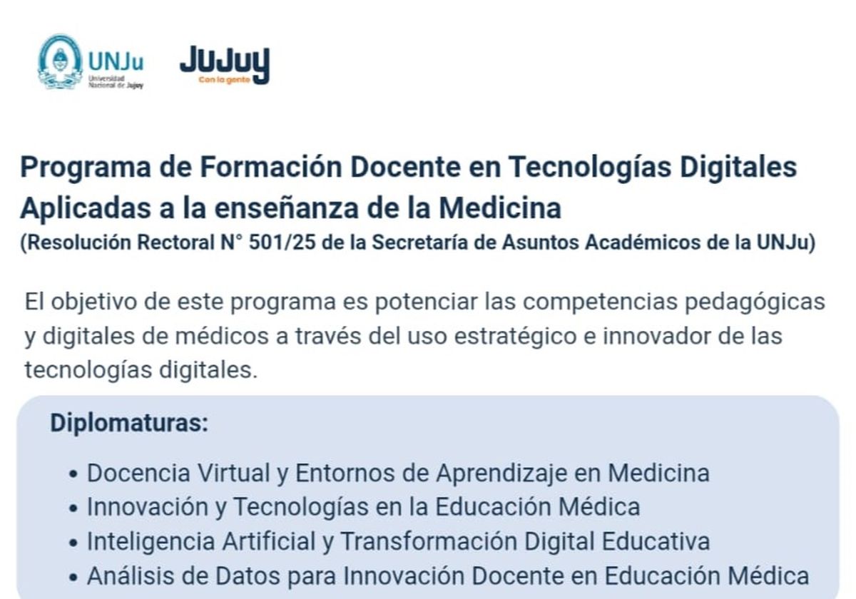 Para mayor información ingresar a https://agenciamedicina.jujuy.gob.ar/formacion-docente-2025/