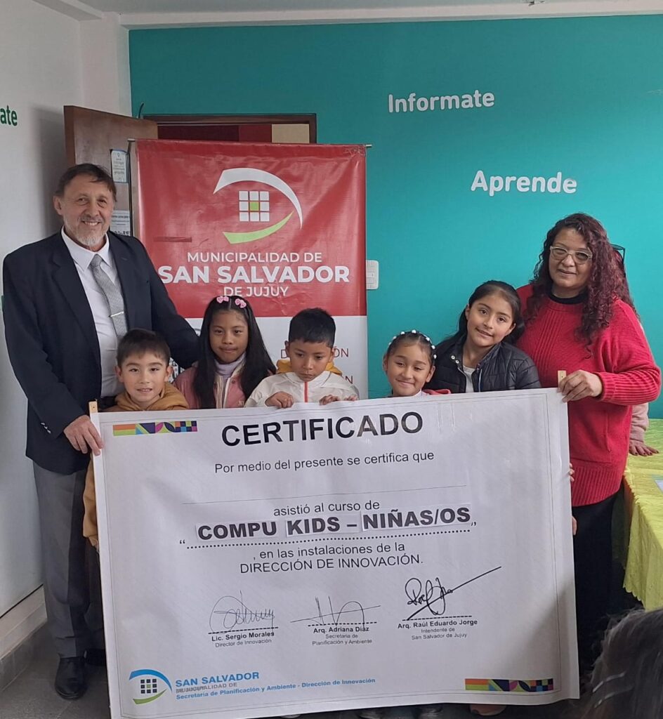 En el Punto Digital Jorge Cafrune, ubicado en el barrio Alto Comedero, se realizó la entrega de certificados a quienes finalizaron los cursos de Diseño Gráfico y Compu Kids, impulsados por la Dirección de Innovación y la Dirección General de Desarrollo, pertenecientes a la Secretaría de Planificación y Ambiente de la Municipalidad de San Salvador de Jujuy.