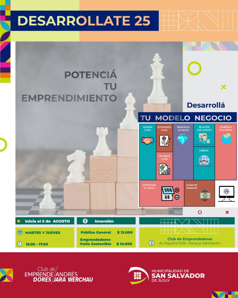 El programa comenzará el próximo 5 de agosto y se dictará en el Club de Emprendedores, ubicado en Av. España 1500, Parque San Martín. Los encuentros se llevarán a cabo los días martes y jueves, en el horario de 15:30 a 17:30 horas. A lo largo del ciclo, los participantes trabajarán sobre herramientas esenciales para el diseño y análisis de sus negocios, abordando conceptos clave como la propuesta de valor, la identificación de clientes, los canales de comercialización, así como los ingresos, costos y recursos necesarios para el funcionamiento del proyecto.