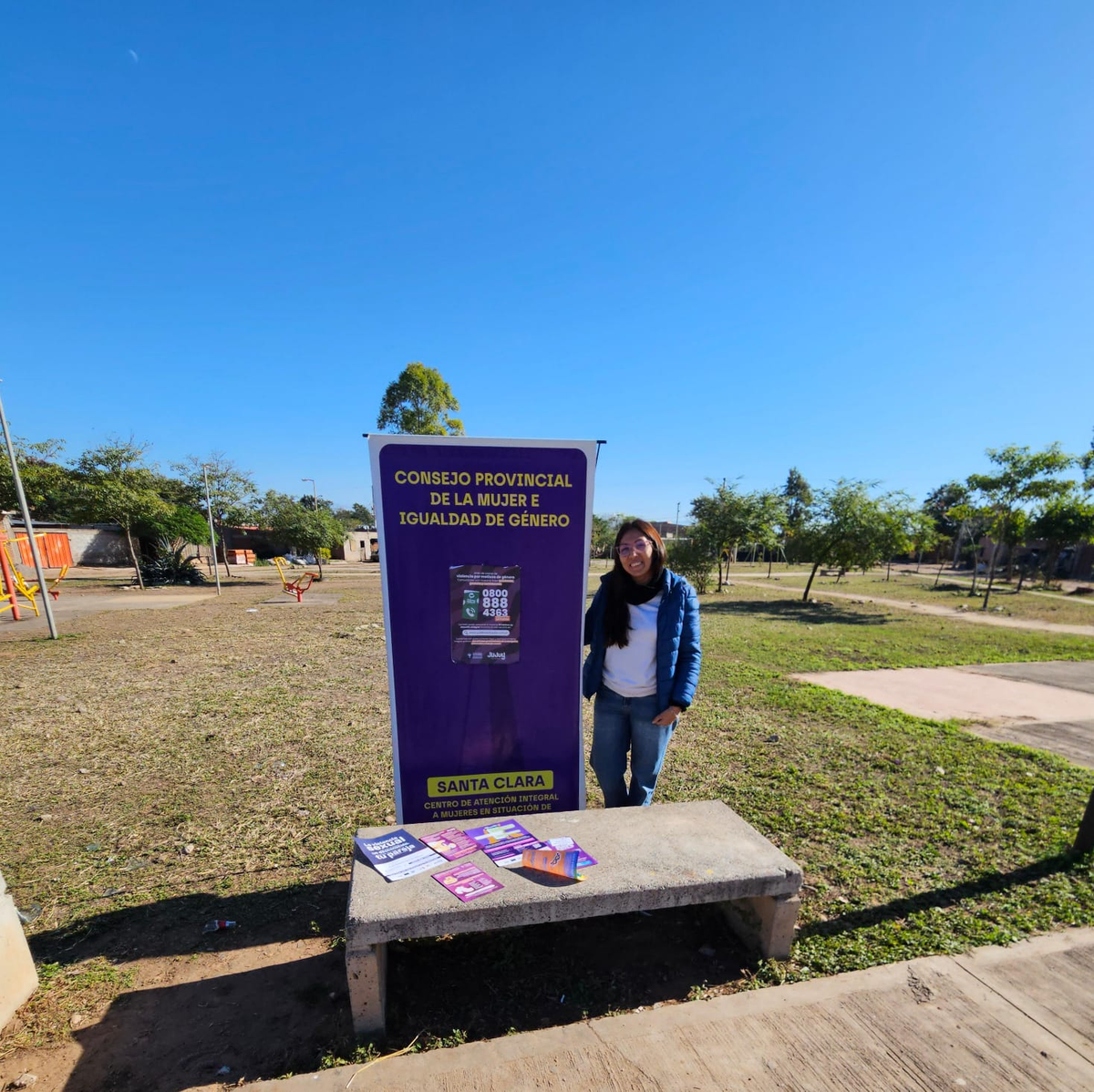 En el marco del trabajo en territorio, profesionales del Centro de Atención a Mujeres en Situación de Violencia de Santa Clara, brindaron información sobre la violencia de género con la entrega de folletería informativa sobre dispositivos que asisten en situaciones de vulnerabilidad.