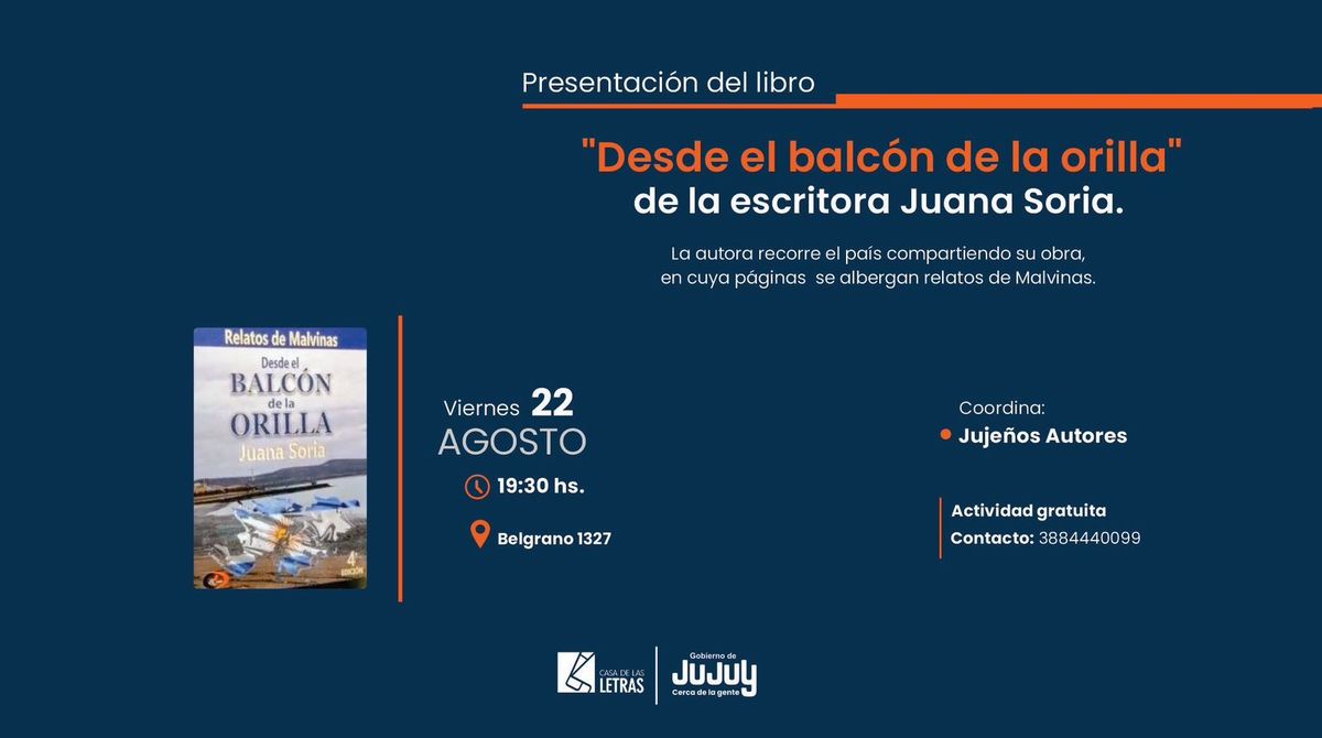 La actividad es abierta al público y forma parte de la agenda literaria de agosto en la provincia. Más que una presentación, se trata de un espacio para pensar Malvinas desde lo humano, lo narrado y lo compartido.