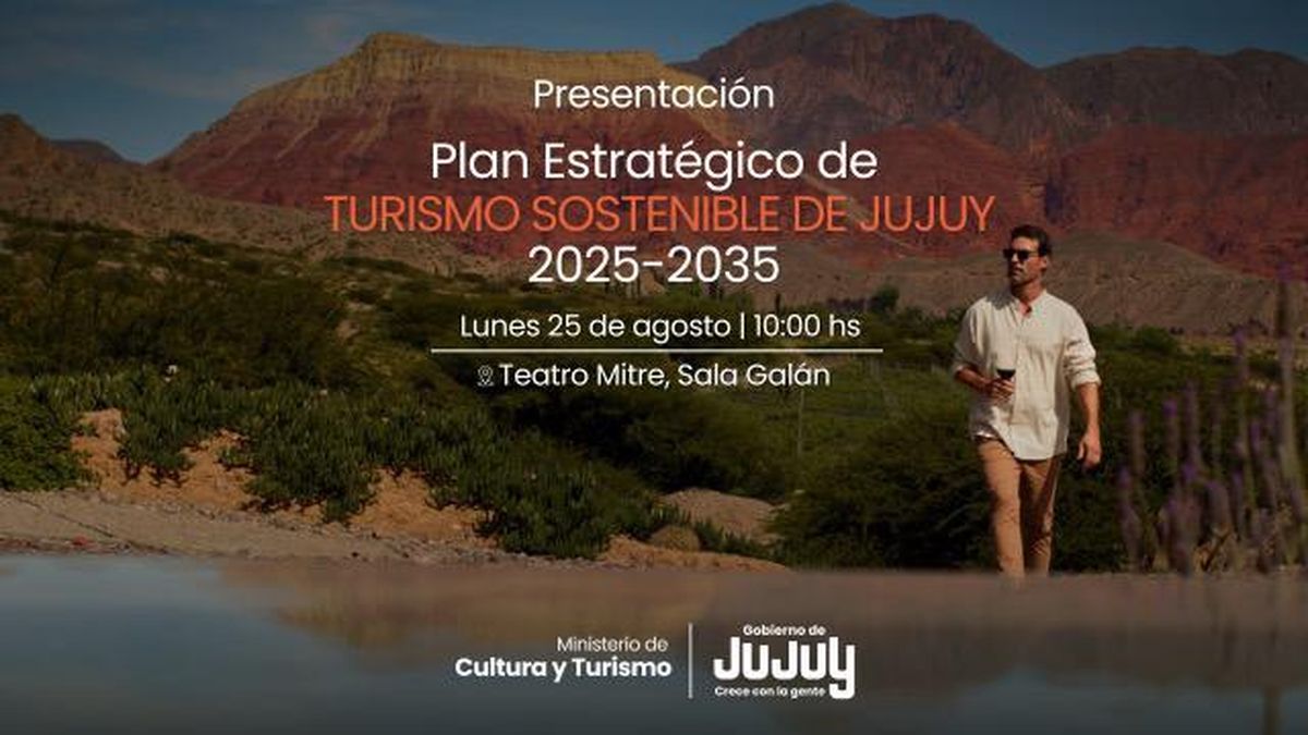 El próximo lunes 25 de agosto a las 10 horas, en la Sala Galán del Teatro Mitre, el Gobierno de Jujuy presentará oficialmente el Plan Estratégico de Turismo Sostenible 2025-2035, un proyecto que marcará el rumbo del sector turístico provincial durante la próxima década.