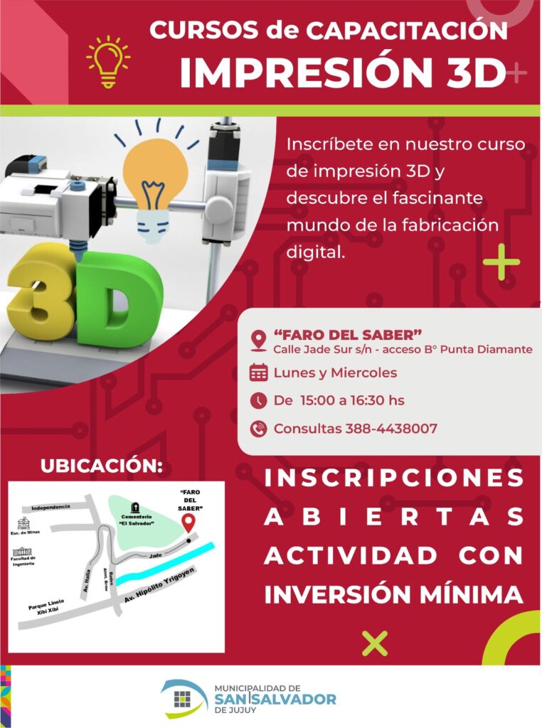 La Municipalidad de San Salvador de Jujuy, a través de la Dirección de Gobernanza Digital, invita a los más pequeños a participar del Curso de Impresión 3D para niños, una propuesta innovadora que combina creatividad, tecnología y aprendizaje divertido.