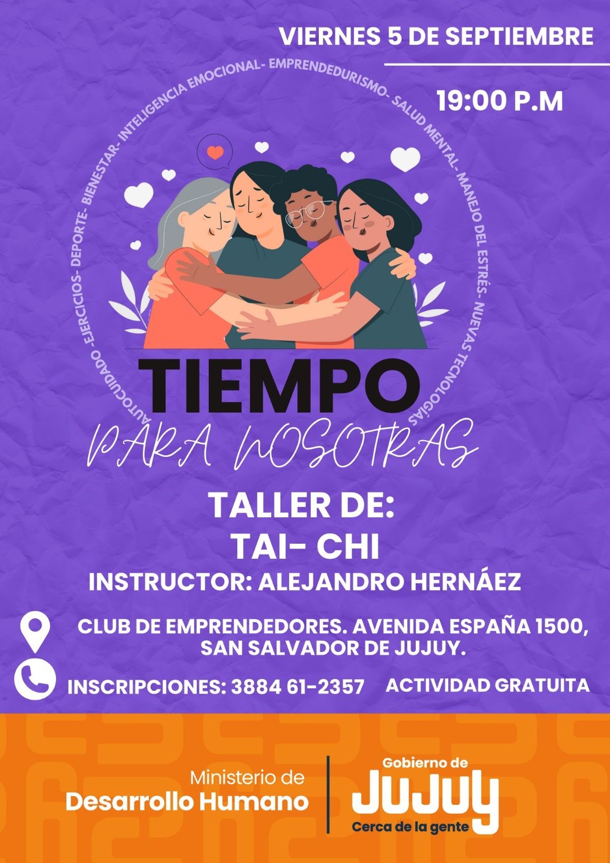 El Ministerio de Desarrollo Humano, a través de la Secretaría de Desarrollo Integral y la Coordinación de Calidad de Vida, invitan a participar del nuevo encuentro del ciclo “Tiempo para Nosotras”, que se llevará a cabo el próximo viernes 5 de septiembre a las 19:00 horas en el Club de Emprendedores.