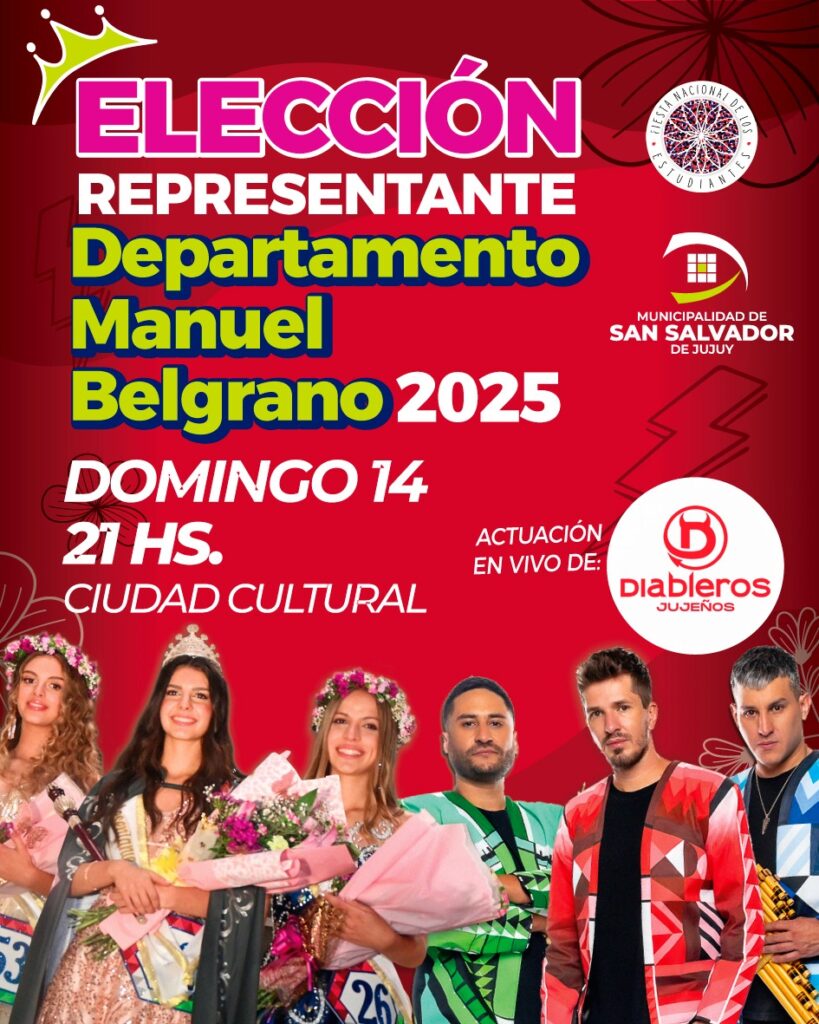 Está todo listo para vivir este domingo 14 de septiembre, desde las 21 horas en Ciudad Cultural, la Elección de la Representante del Departamento Manuel Belgrano 2025, en el marco de la Fiesta Nacional de los Estudiantes.