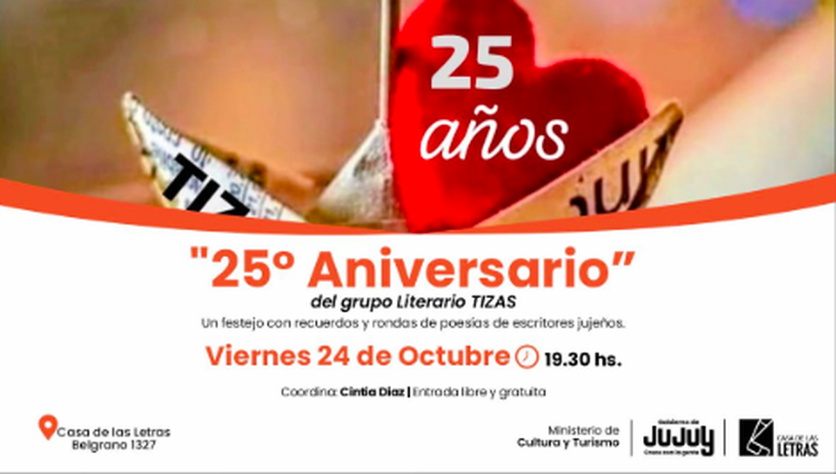 El encuentro será el viernes 24 de octubre a las 19:30 en la Casa de las Letras, con entrada libre y gratuita. El festejo marca un hito significativo para la literatura local, al celebrar la continuidad de un proyecto que logró mantenerse vigente y activo durante un cuarto de siglo.