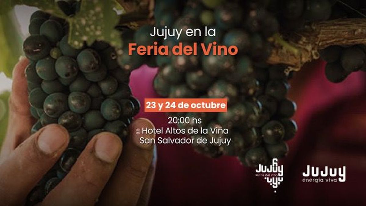 El Ministerio de Cultura y Turismo participa con un stand en la 10ª edición de la Feria del Vino, promocionando las Rutas del Vino de Jujuy, que se realiza este jueves 23 y viernes 24 de octubre a las 20 hs en el Hotel Altos de la Viña, en San Salvador de Jujuy.