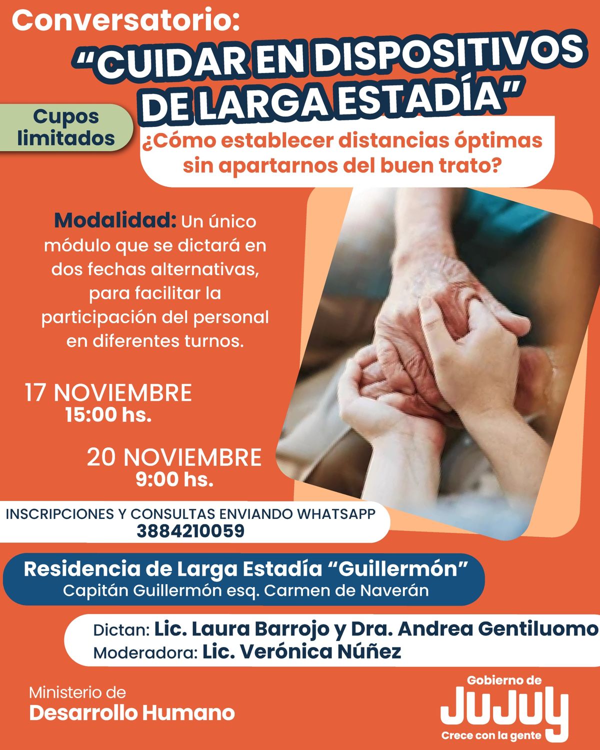 El Ministerio de Desarrollo Humano, a través de la Dirección General de Personas Mayores, llevará adelante el conversatorio “Cuidar en Dispositivos de Larga Estadía: ¿Cómo establecer distancias óptimas sin apartarnos del buen trato?”, una propuesta formativa orientada a fortalecer las prácticas de cuidado desde una mirada ética, relacional y centrada en las personas mayores.