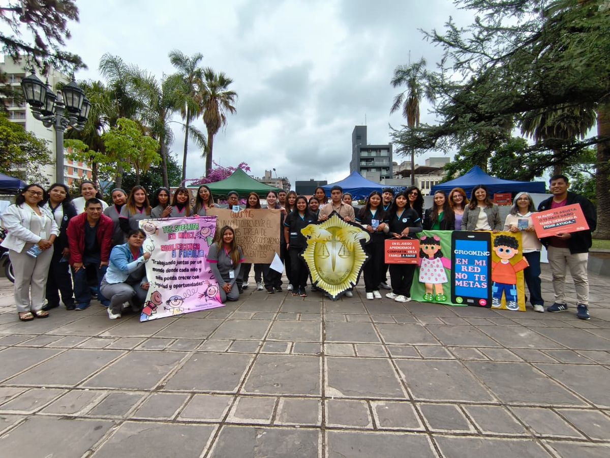 En Plaza Belgrano de la capital jujeña, el equipo organizó un stand informativo orientado a sensibilizar a la comunidad sobre estos delitos, brindar herramientas de seguridad digital y reforzar la importancia del acompañamiento familiar en el uso responsable de Internet.
