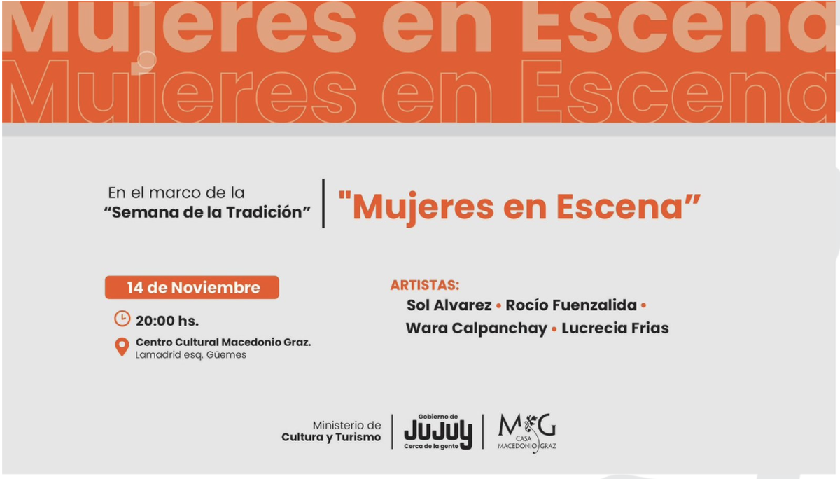 Este viernes, el Centro Cultural Macedonio Graz será escenario de un espectáculo dedicado al talento y la creatividad de las mujeres jujeñas. «Mujeres en Escena» reúne a Sol Álvarez, Rocío Fuenzalida, Wara Calpanchay y Lucrecia Frías en una noche de música, poesía y tradición.