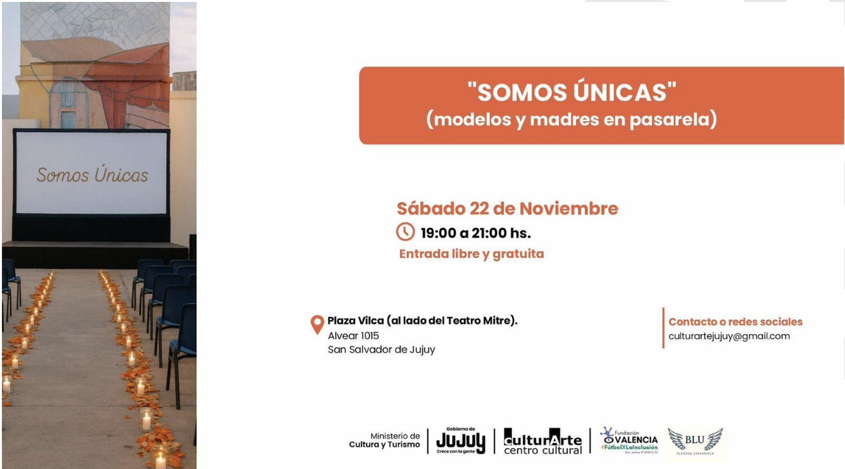 Bajo la consigna «SOMOS ÚNICAS» (modelos y madres en pasarela), se llevará a cabo un evento que busca romper estereotipos y celebrar la identidad. Organizado por CulturArte y el Ministerio de Cultura y Turismo, el encuentro promete una tarde distinta al aire libre.