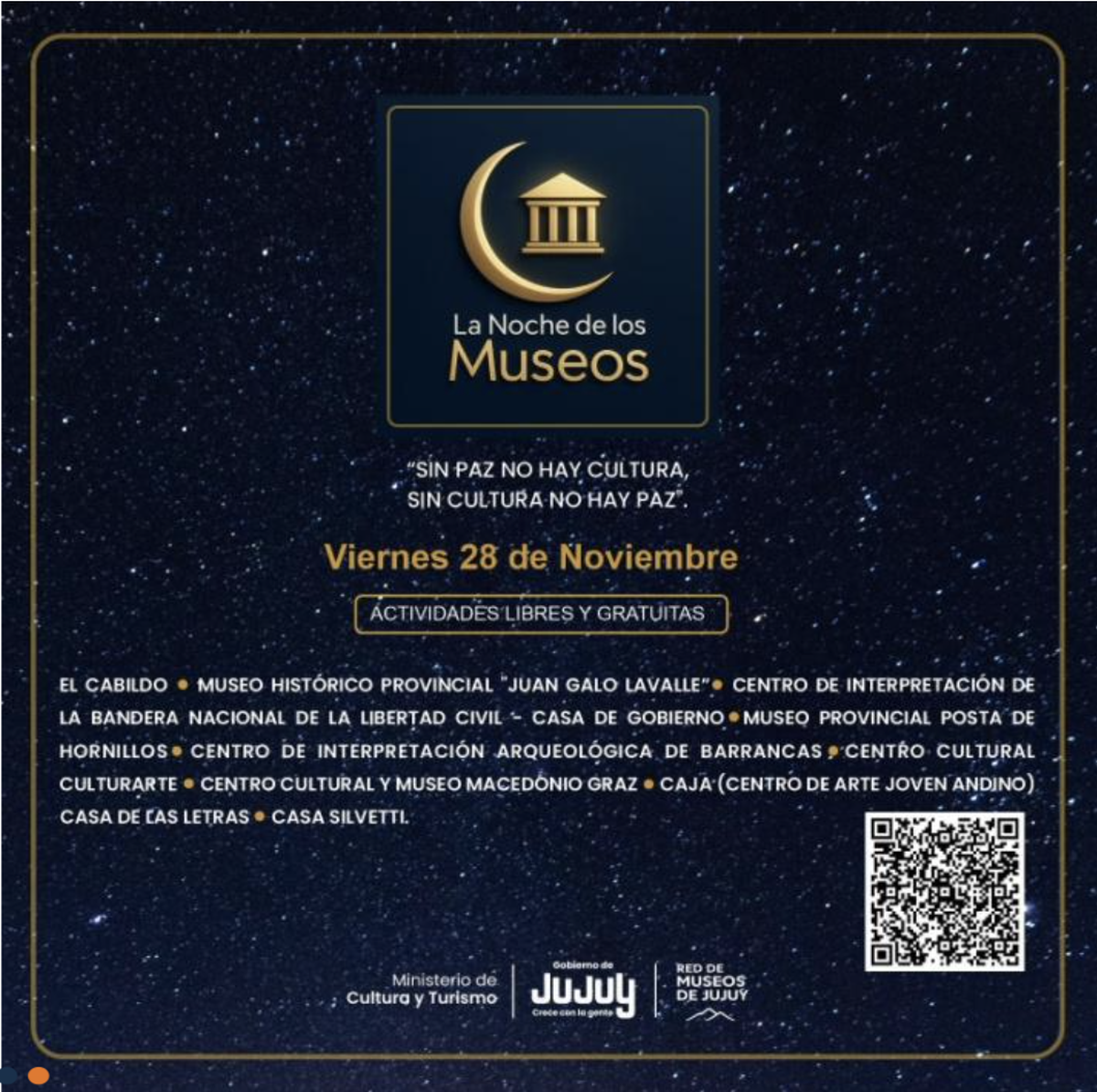 Jujuy se prepara para vivir la 14° edición de la Noche de los Museos, una propuesta que convoca a familias, estudiantes, turistas y amantes del patrimonio a disfrutar de una jornada extendida de actividades culturales y visitas especiales. Este viernes 28 de noviembre, entre las 18 y las 24, espacios culturales de toda la provincia ofrecerán una programación diversa y gratuita.