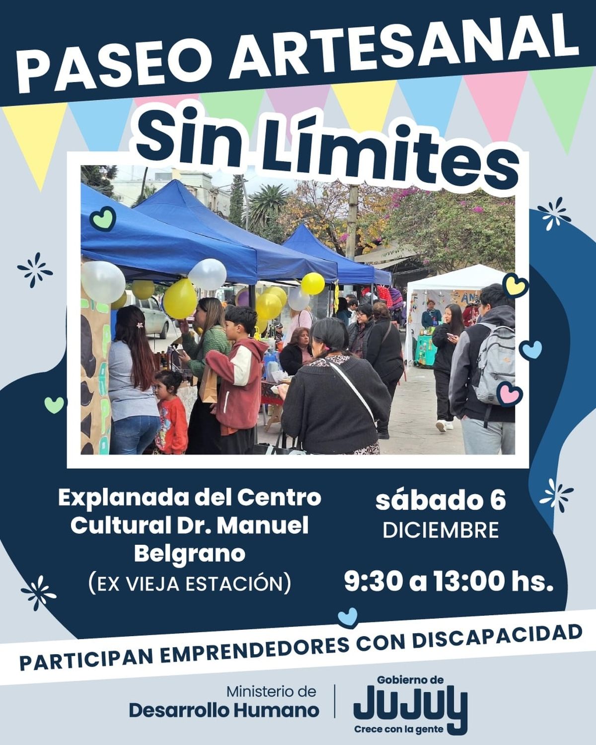 En el marco de las actividades organizadas por el 3 de diciembre, Día Internacional de las Personas con Discapacidad, el Ministerio de Desarrollo Humano, a través de la Secretaría de Desarrollo Integral, invita a participar del “Paseo Artesanal Sin Límites”, una propuesta que promueve la inclusión socioeconómica y la visibilización del trabajo de emprendedores con discapacidad.