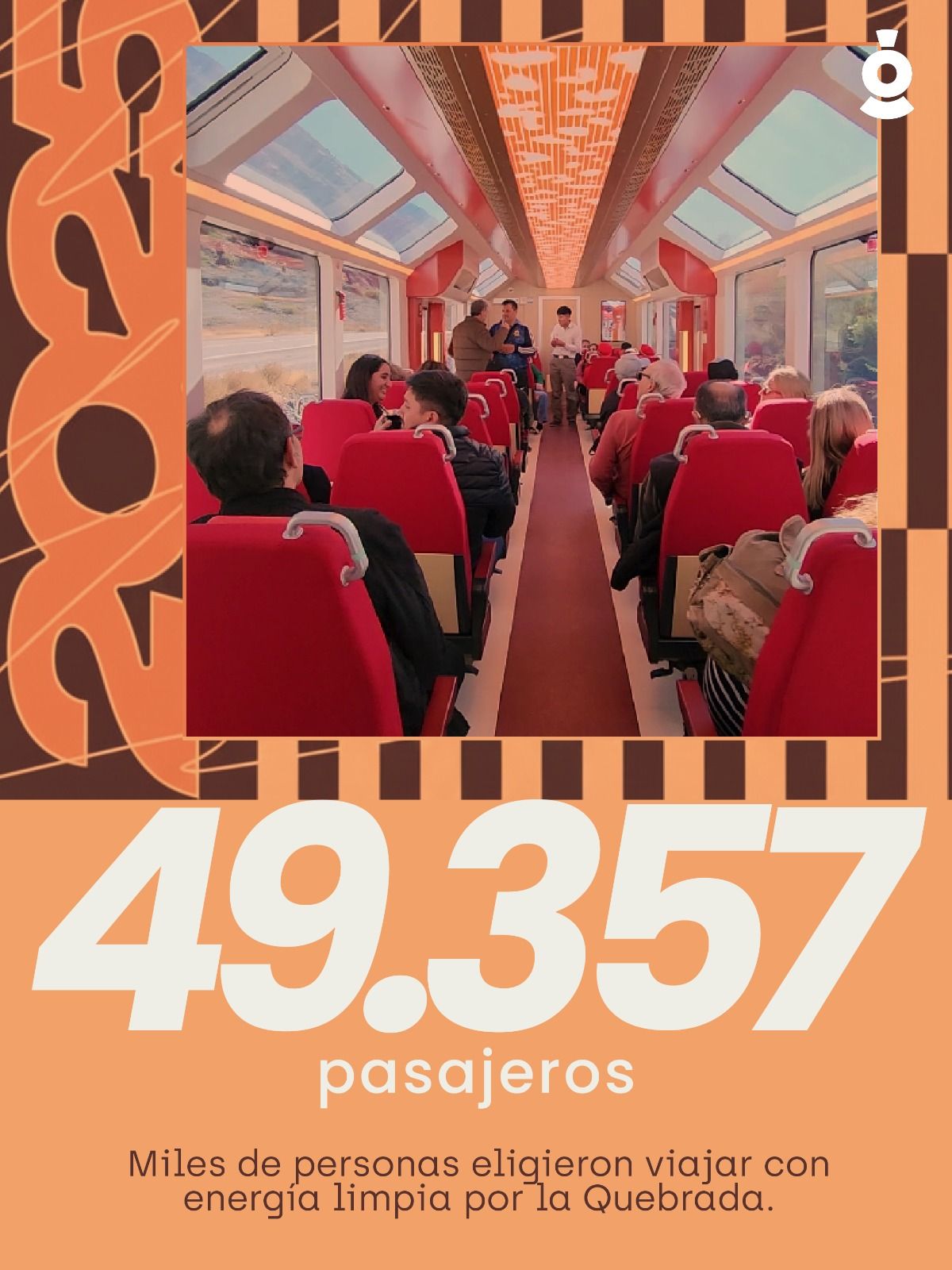 El equipo del Tren Solar de La Quebrada, tuvo un 2025 exitoso, consolidando como uno de los proyectos de movilidad sostenible y turística más importantes del país. Durante el año, el servicio registró un crecimiento sostenido en cantidad de pasajeros, impacto económico en la región y acciones de vinculación comunitaria.